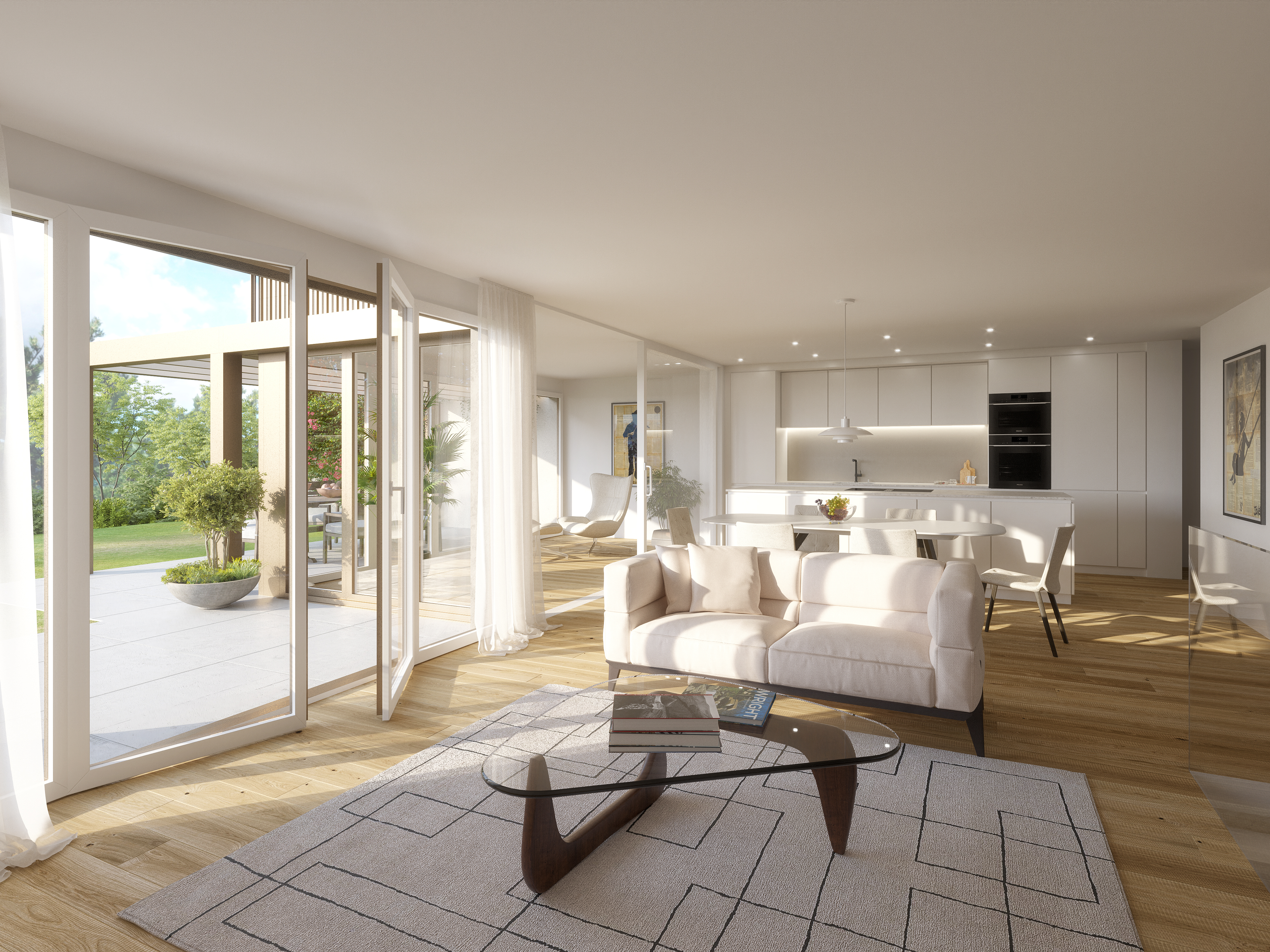 - W4: Attika & Sockelgeschoss | 4.5 Zimmer | 142 m² NWF | 132 m² Dachterrasse | 16 m² Garten
